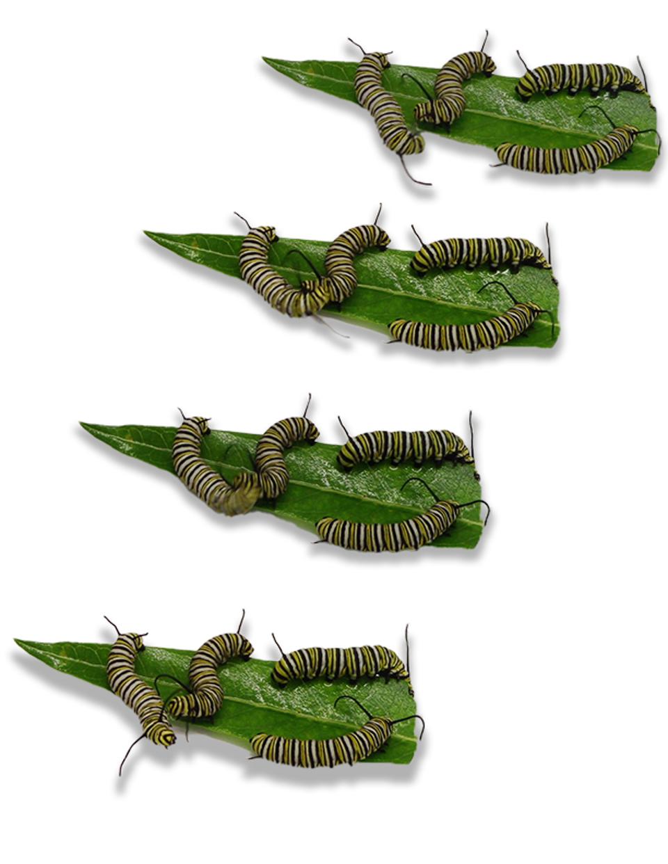 He found videos of caterpillars behaving this way on YouTube and knew it was not unique to his garden only. The YouTube videos showed different behavioral changes in caterpillars. He stored caterpillars in plastic containers in his lab to experiment. Caterpillars were stored in groups of four. During feeding time, the caterpillars would head-butt each other. After finishing the experiment they returned the caterpillars to the wild.